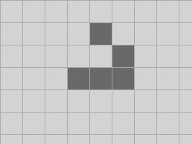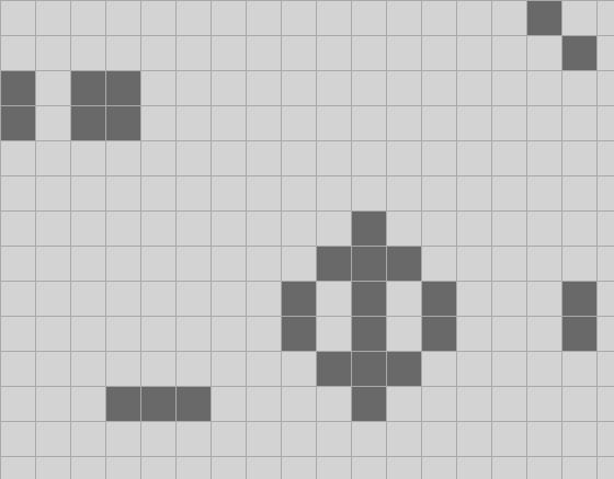 What then are the costs we should consider when evaluating the asymptotic performance of an algorithm? Typically there are two: memory usage, and time to compute the new state after one tick. (Later on in this series we’ll consider a more sophisticated way to represent number of elapsed ticks that is analogous to the way we represent grid size by quad scale, but we won’t need that for a while yet.)