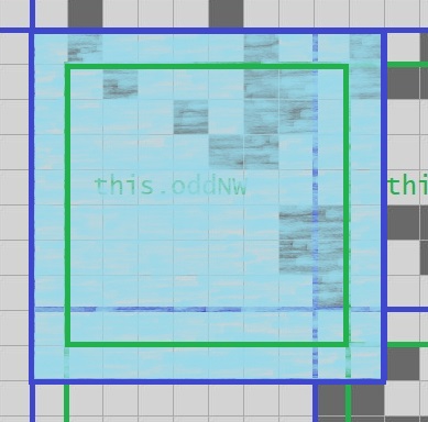 If anything in the 18×18 region containing this Quad4 or its relevant neighbouring Quad4s are active, we need to stay active. We set the votes of both even and odd cycle back to active if they were different.