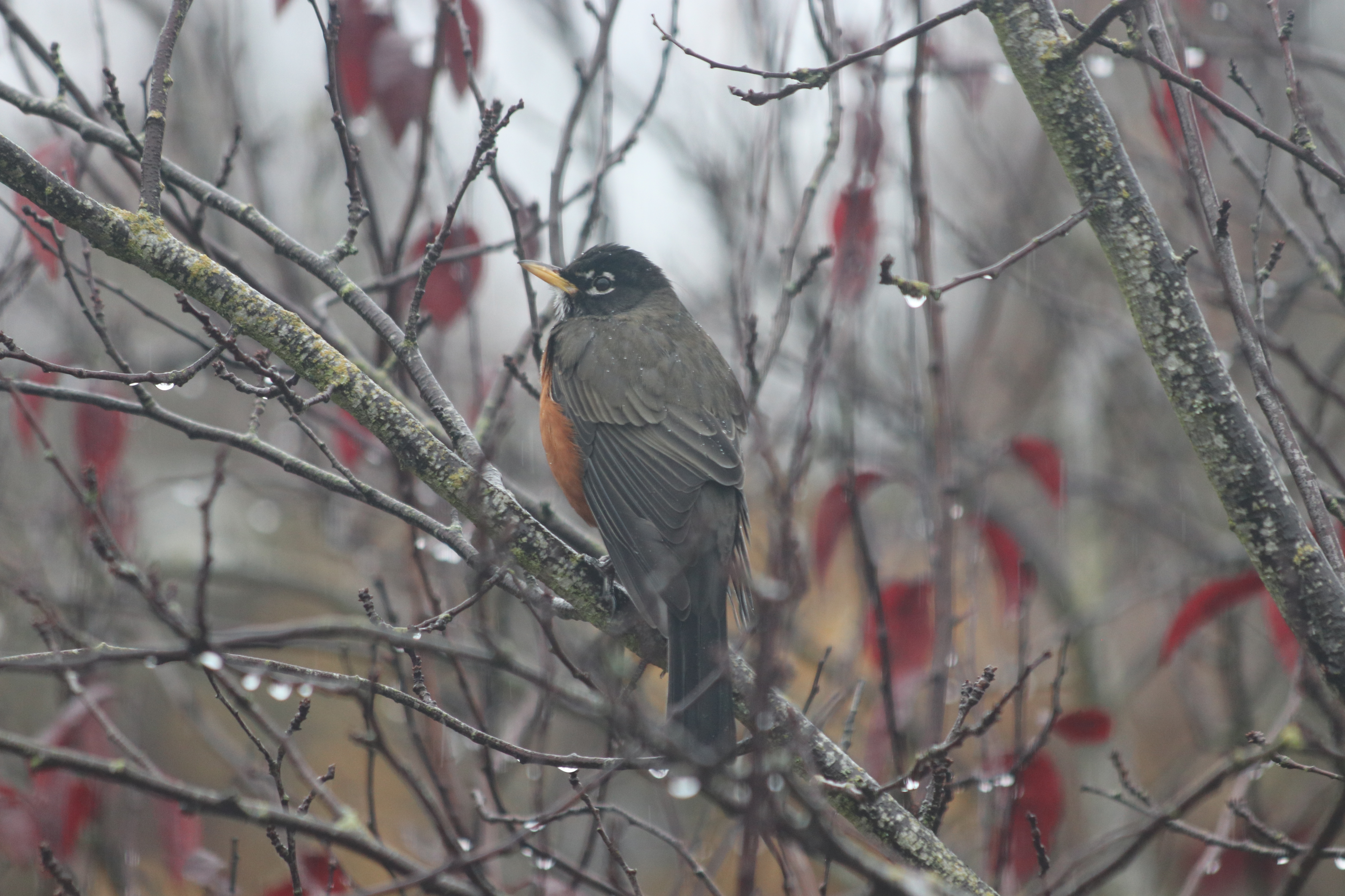 Robin — lives in constant disdain. Not to be confused with the spotted towhee, who thinks you are awesome.