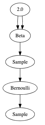 It sure looks like fairness() returns an instance of a pytorch object — Beta(2,2) — but the model behaves as though it returned a sample from that distribution in the call to Bernoulli. What’s going on?